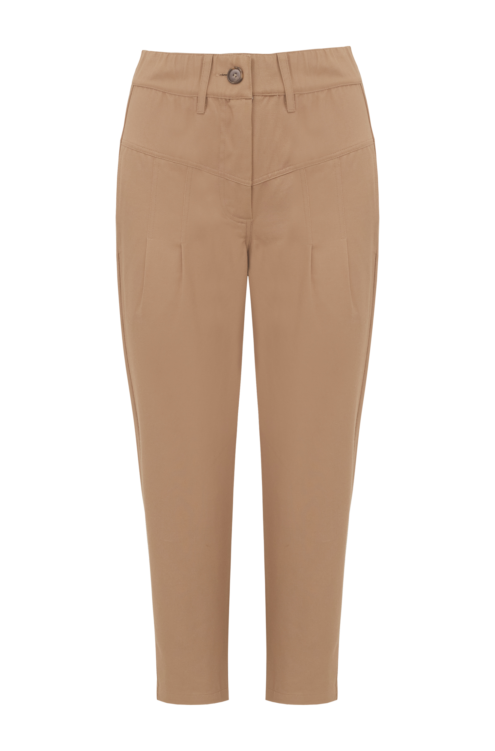 Calça reta de alfaiataria no tecido sarja com pregas.
