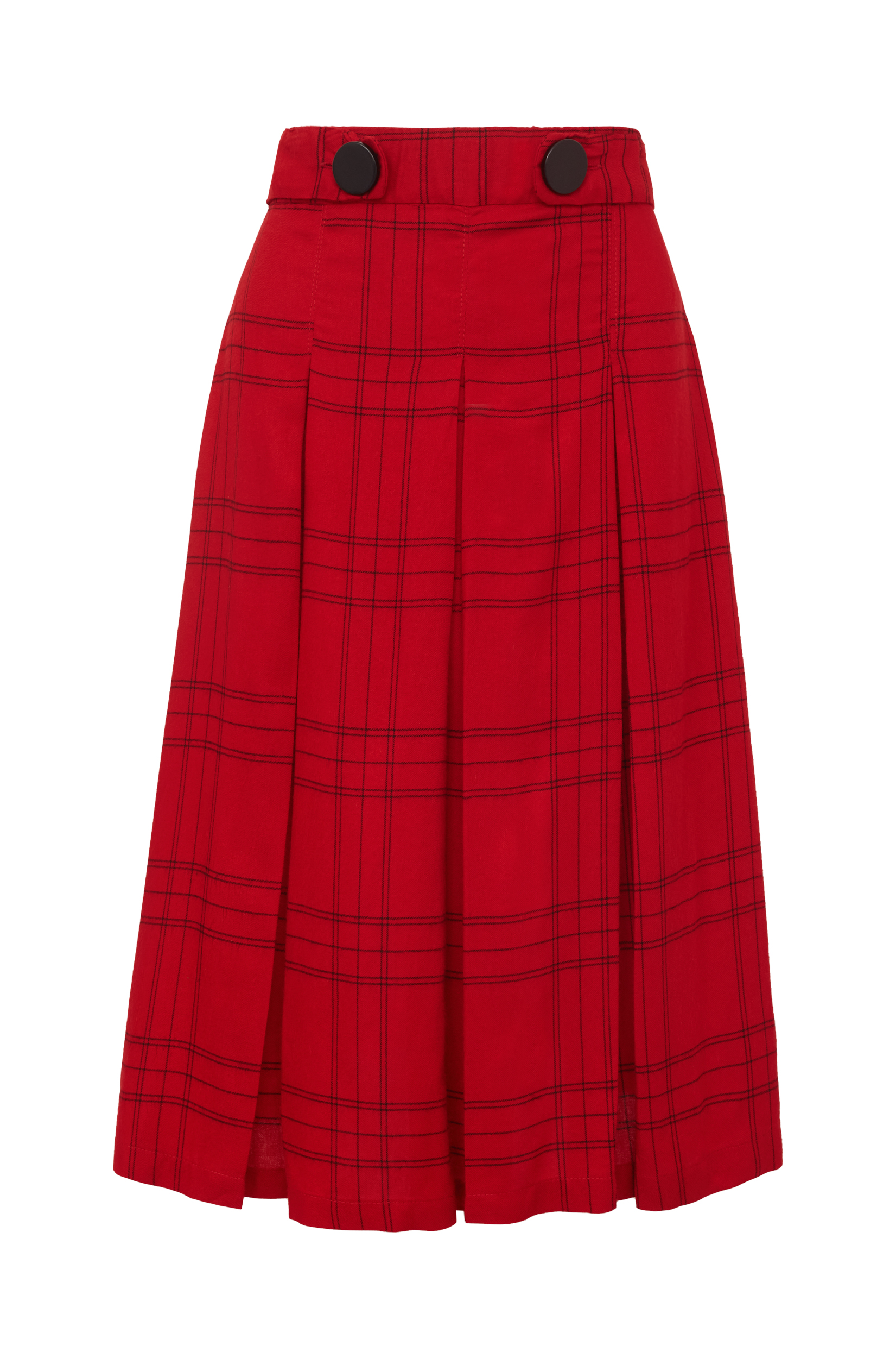 Saia midi com pregas.